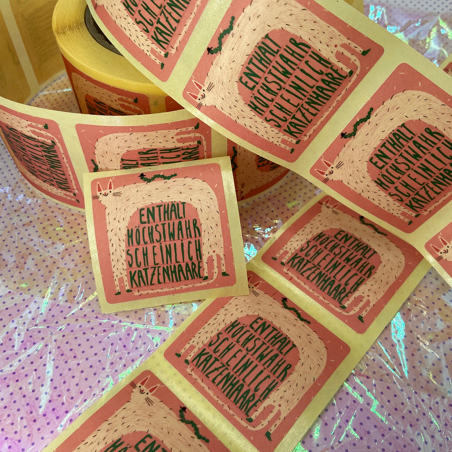 Ein Set aus 10 Stück der neuen Katzenhaarsticker von meiner Verpackungsrolle :3 Damit ihr jetzt auch alle mit Allergie gut vorwarnen könnt.
