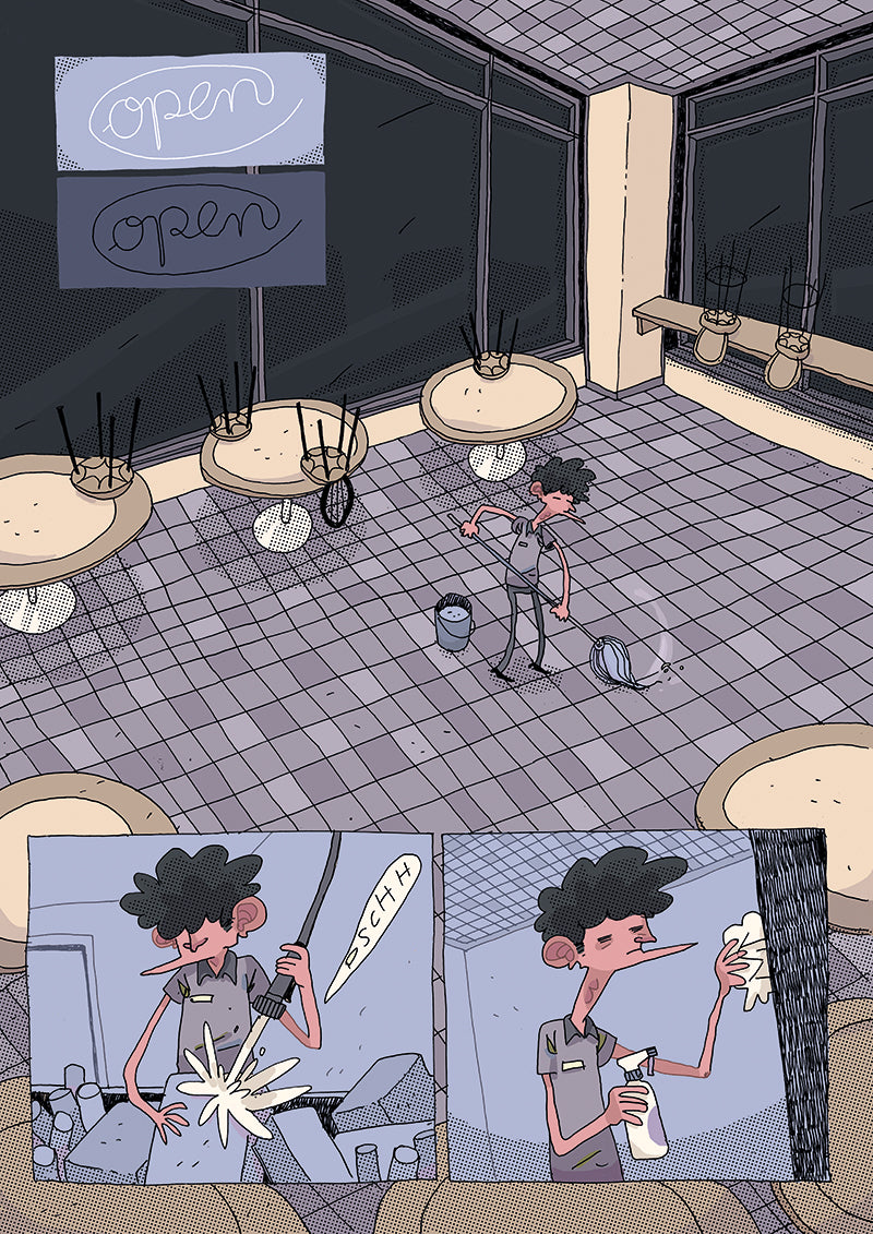 Maertens hat einen Job im Burgerladen, was ihm eigentlich reicht, so Karriere-mäßig. In seiner Freizeit löst er die Rätsel in den Krimiheftchen, liest und guckt (im Fernsehen) Krimis und hat schon so bei einigen Rätselgewinnspielen gewonnen.